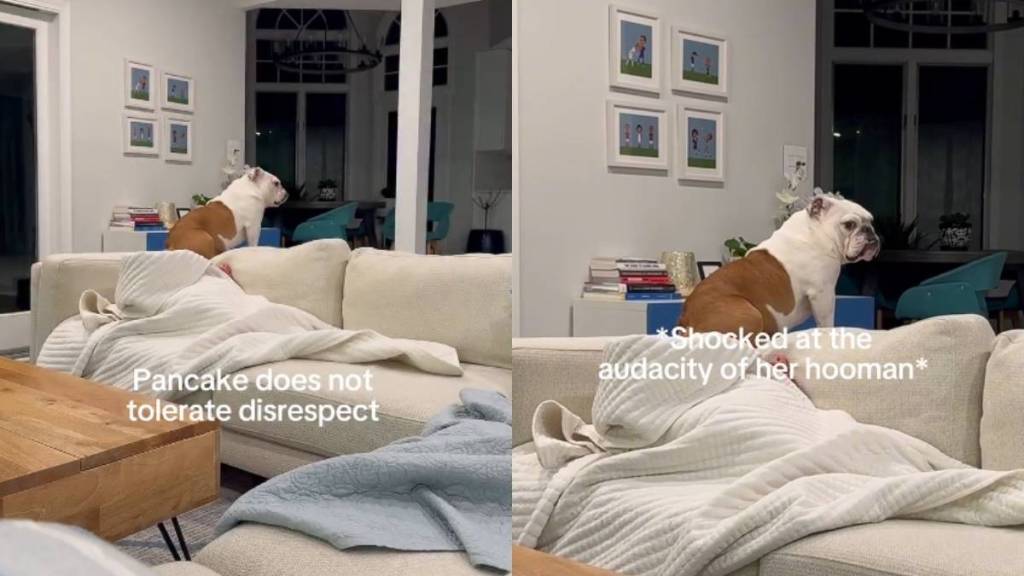 In a hilarious dog video from @thebabypancake, an English Bulldog named Pancake shows that she has no tolerance for disrespect. The clip captures her sitting perched on the couch, calmly staring out across the living room until her owner decides to test her patience. What follows is pure chaos, and if you are a dog parent, you might relate to it.